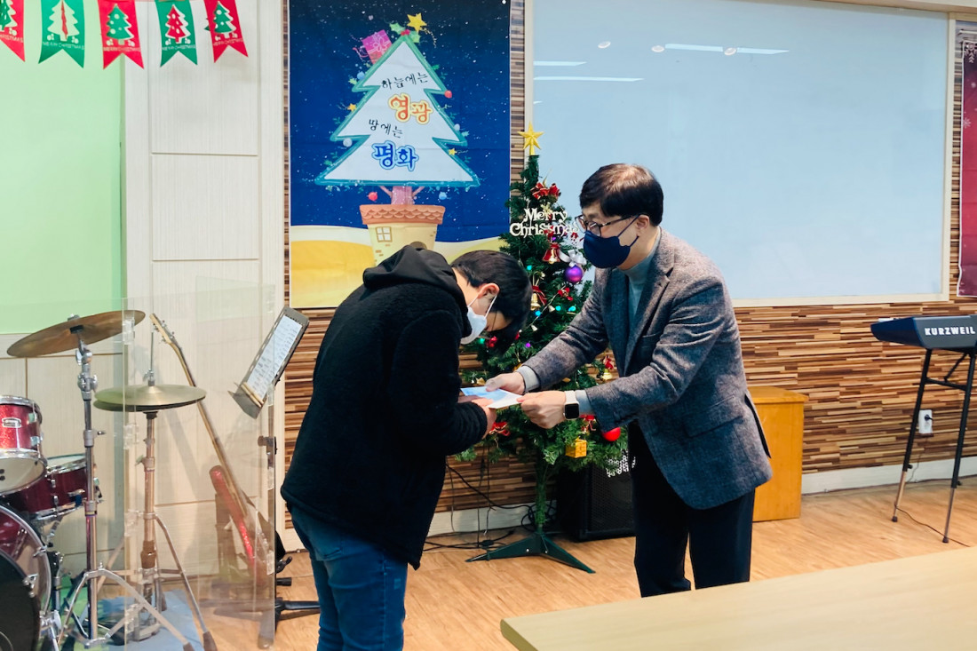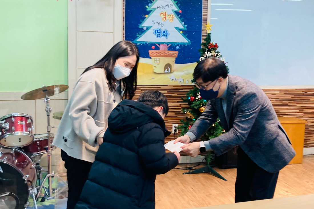 성도님들이 모아주신 추수감사헌금 중 일부를 학생들에게 장학금으로 전달하였습니다.