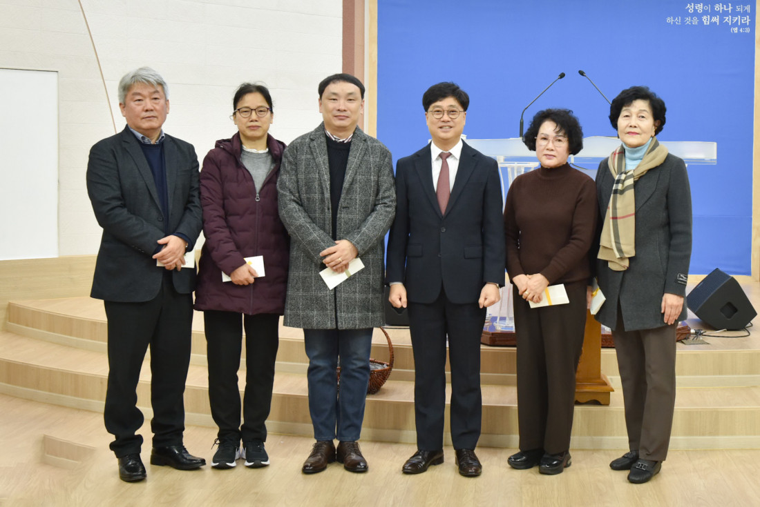 일년동안 교회에서 봉사하신 모든 분들께 감사의 말씀을 드립니다. 봉사자 대표 차량봉사 : 남승원 집사, 안내봉사 : 신미경 집사, 청소봉사 : 김채순 권사 식당봉사 : 정순옥 권사 , 방송봉사 : 김은권 집사
