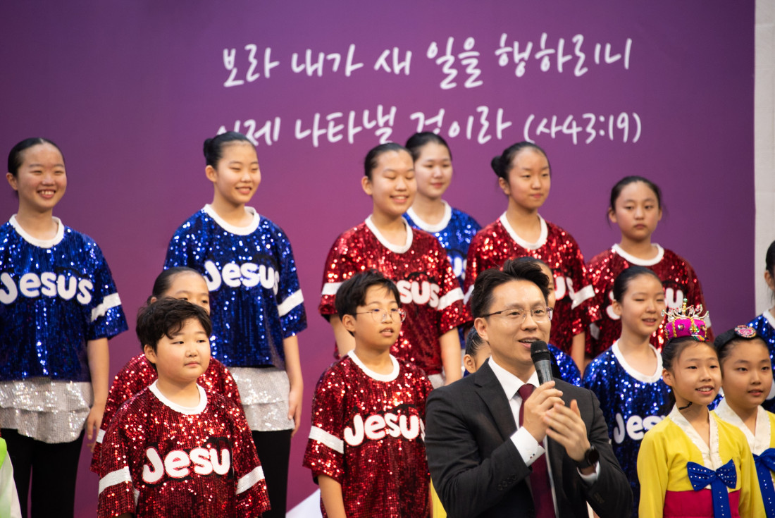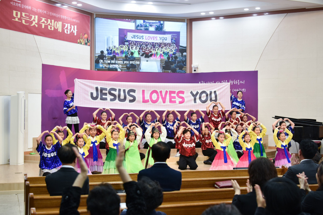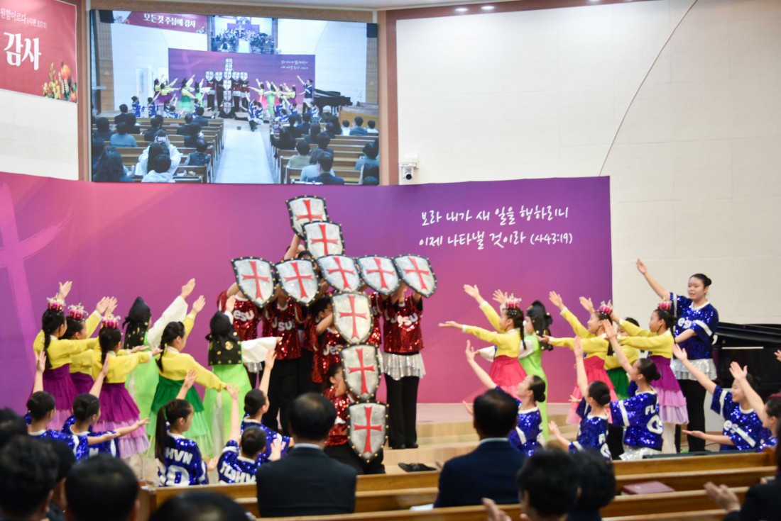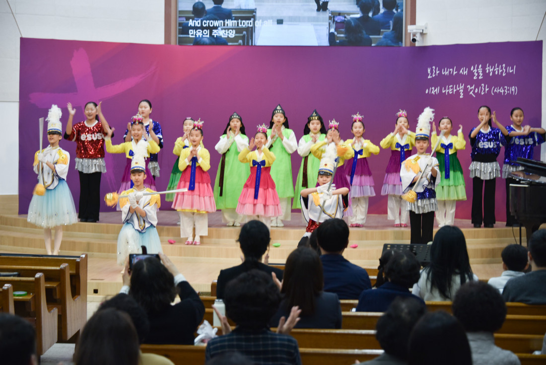 하나님을 찬양하는 광주 극동방송 어린이 합창단의 찬양과 율동은
