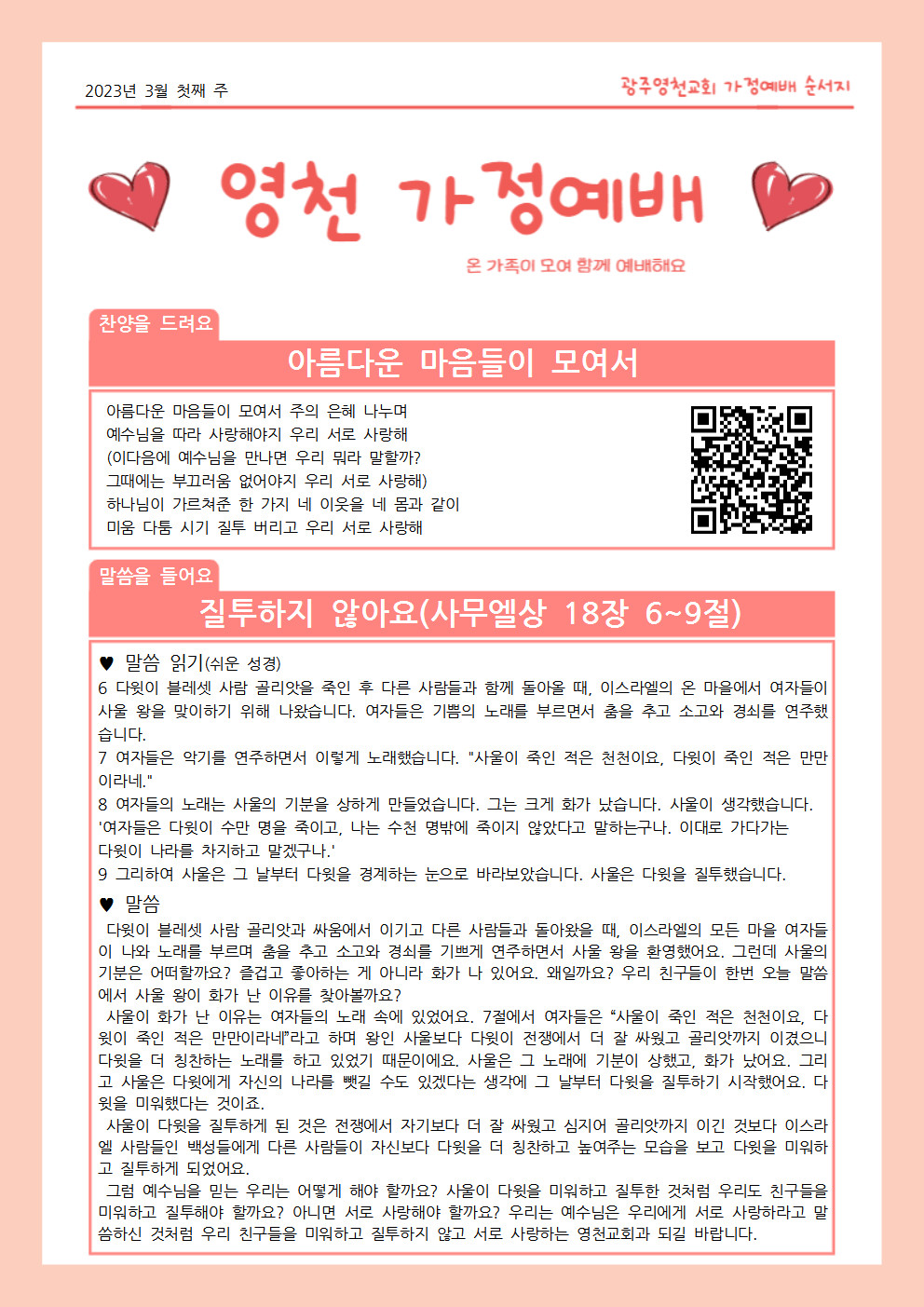 3월 첫째주 가정예배 순서지