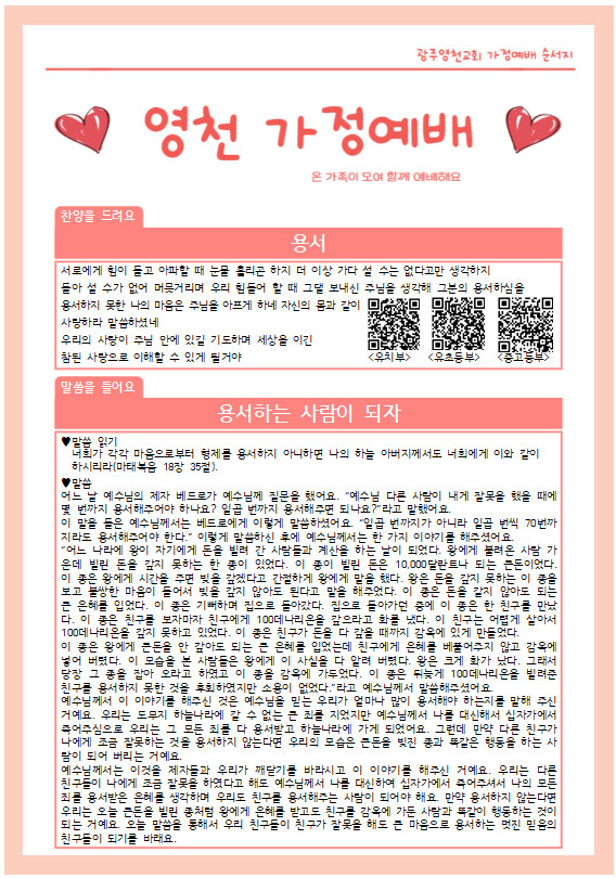 5월 넷째주 가정예배 순서지