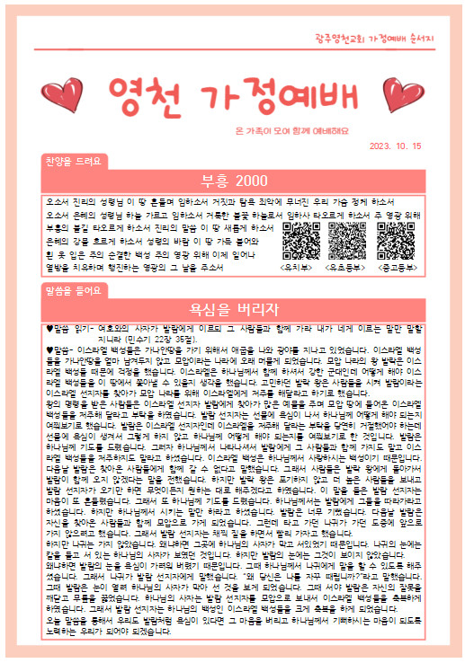 10월 첫째주 가정예배 순서지