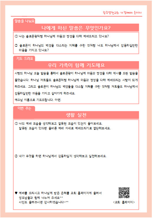 3월 셋째주 가정예배 순서지