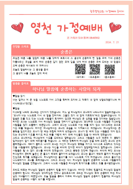 7월 넷째주 가정예배 순서지