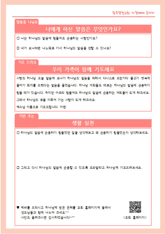 6월 넷째주 가정예배 순서지