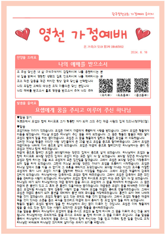 8월 셋째주 가정예배 순서지