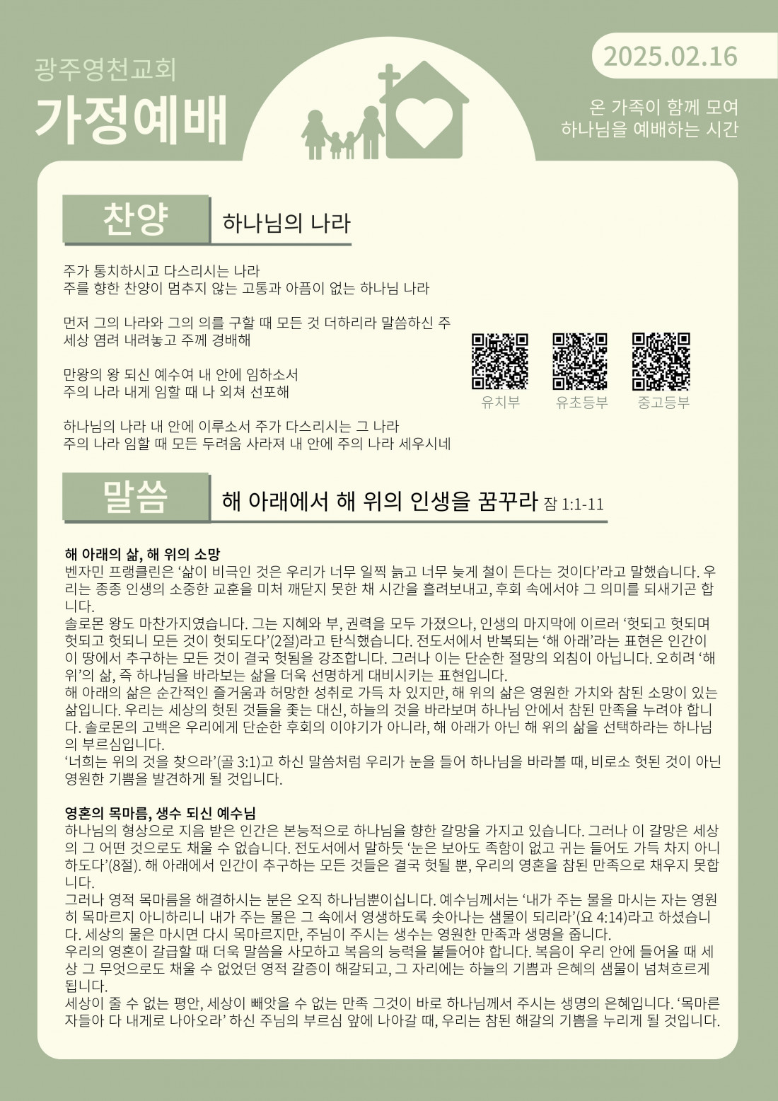 2월 첫째 주 가정예배