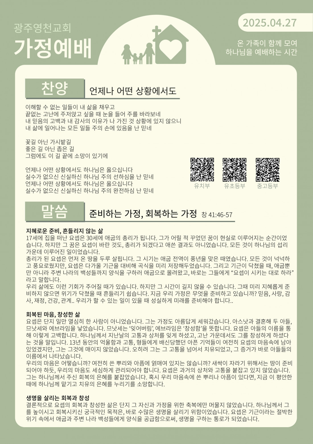 4월 둘째 주 가정예배