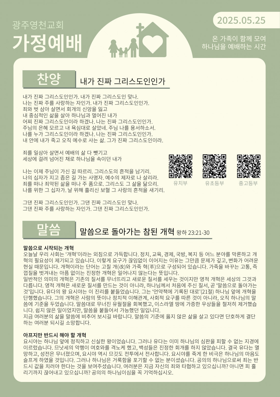5월 넷째 주 가정예배