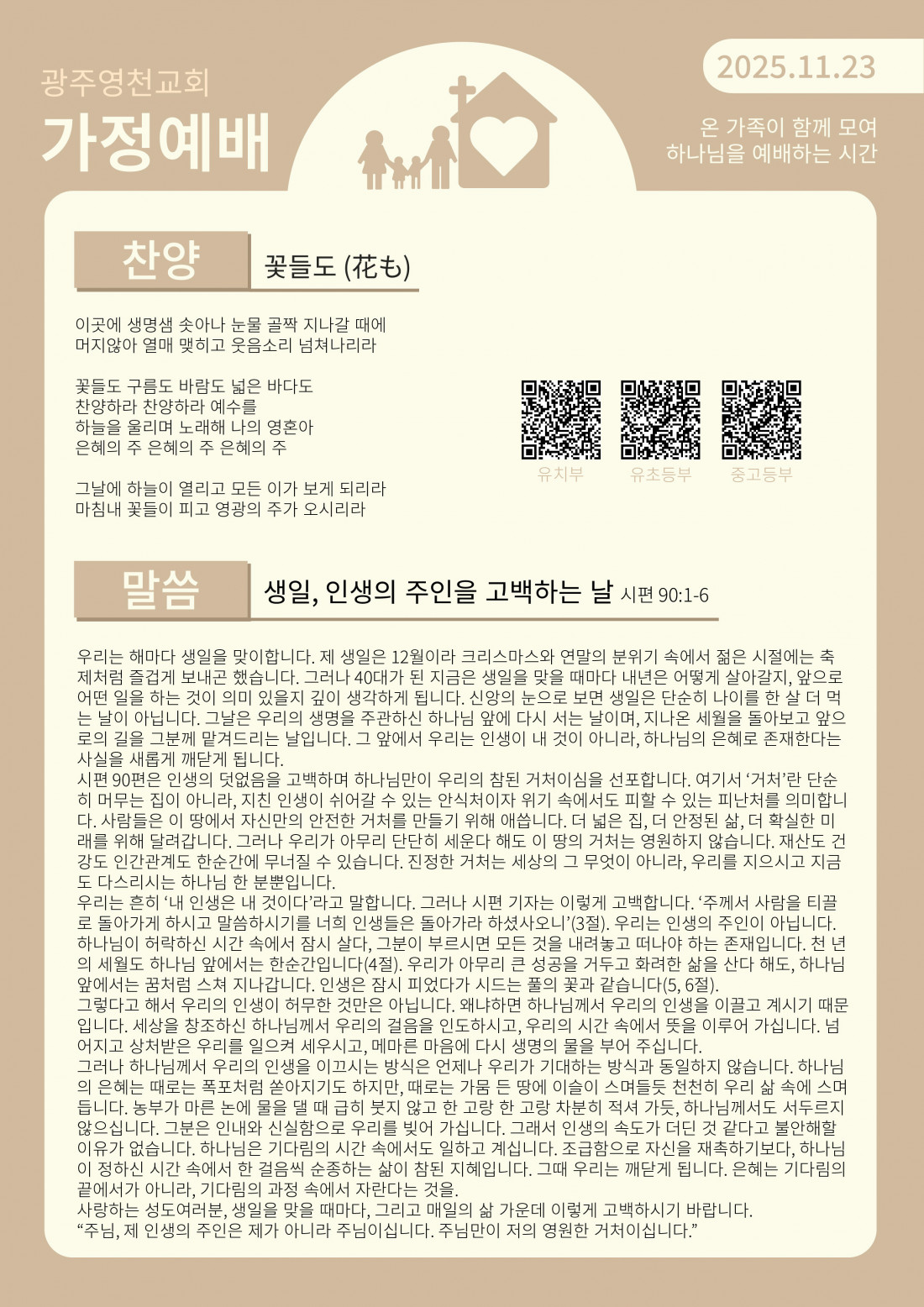 11월 둘째 주 가정예배