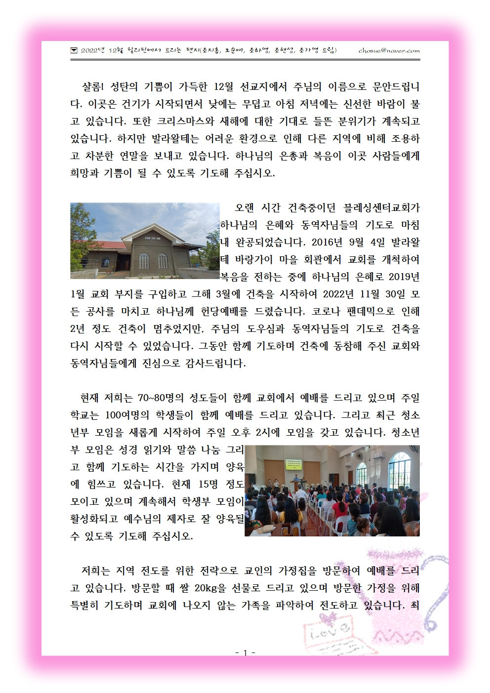 선교사님과 선교지에도 성탄절에 주님의 축복이 가득하시길 기도합니다.