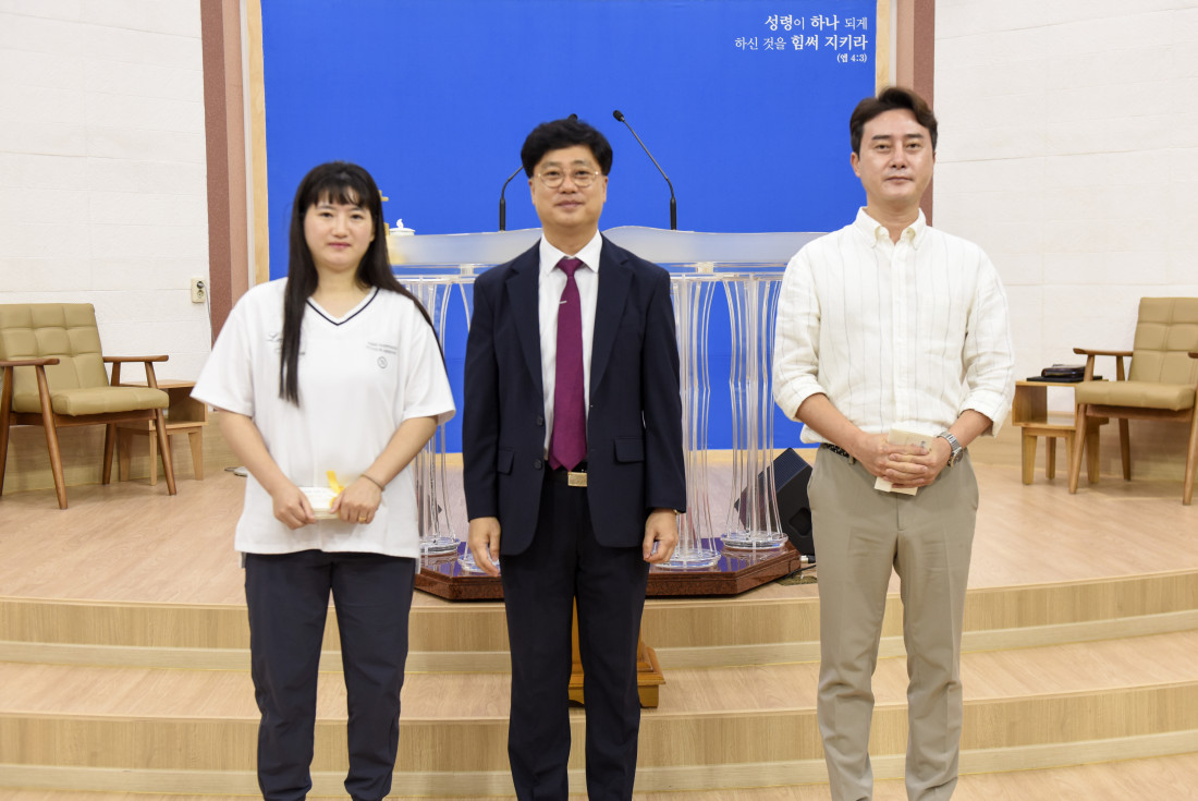 시상자 대표로 김기환 안수집사님, 문주애 집사님이 시상하였습니다.