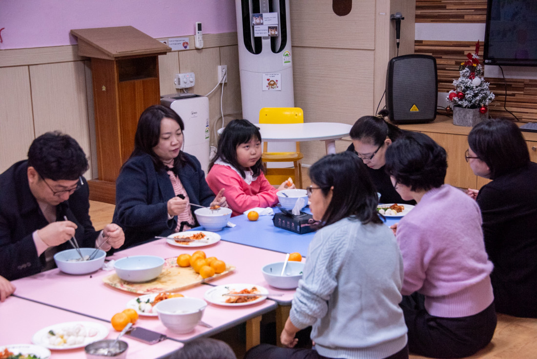 성탄 축하 예배 후의 모습 (경품 추첨과 간식 시간)