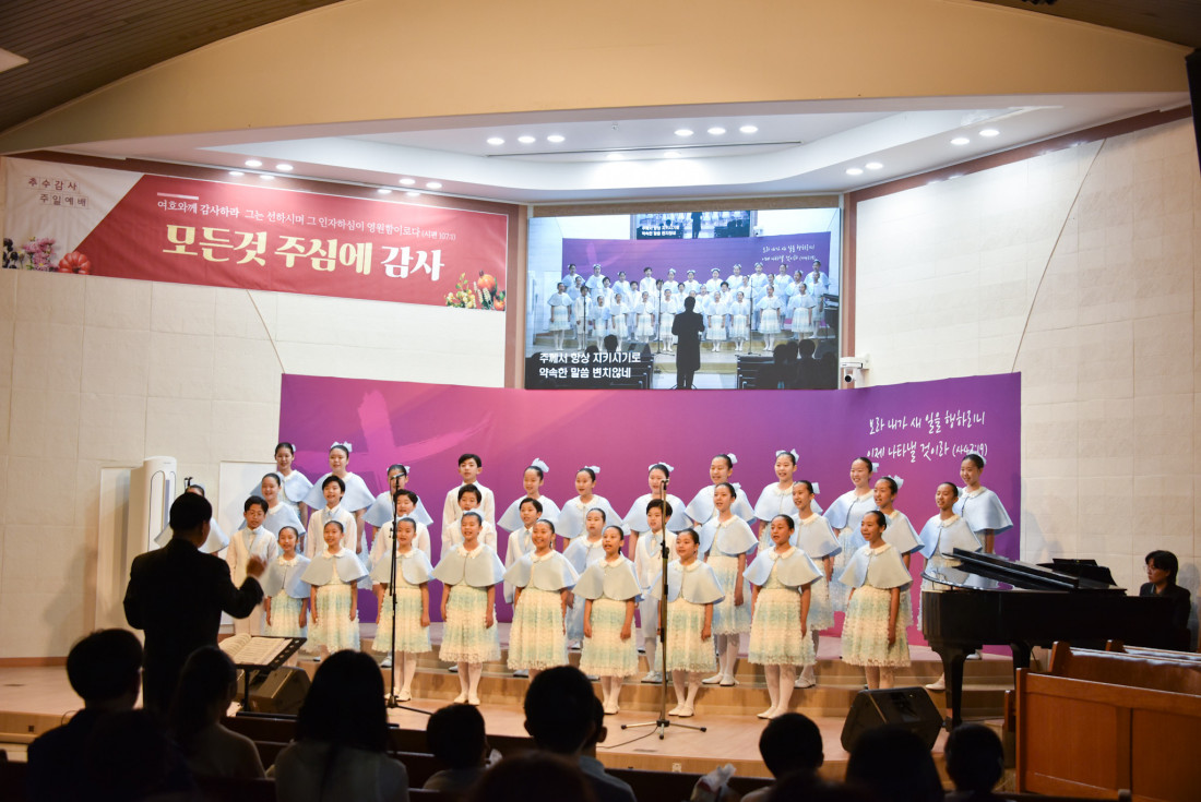 하나님을 찬양하는 광주 극동방송 어린이 합창단의 찬양과 율동은
