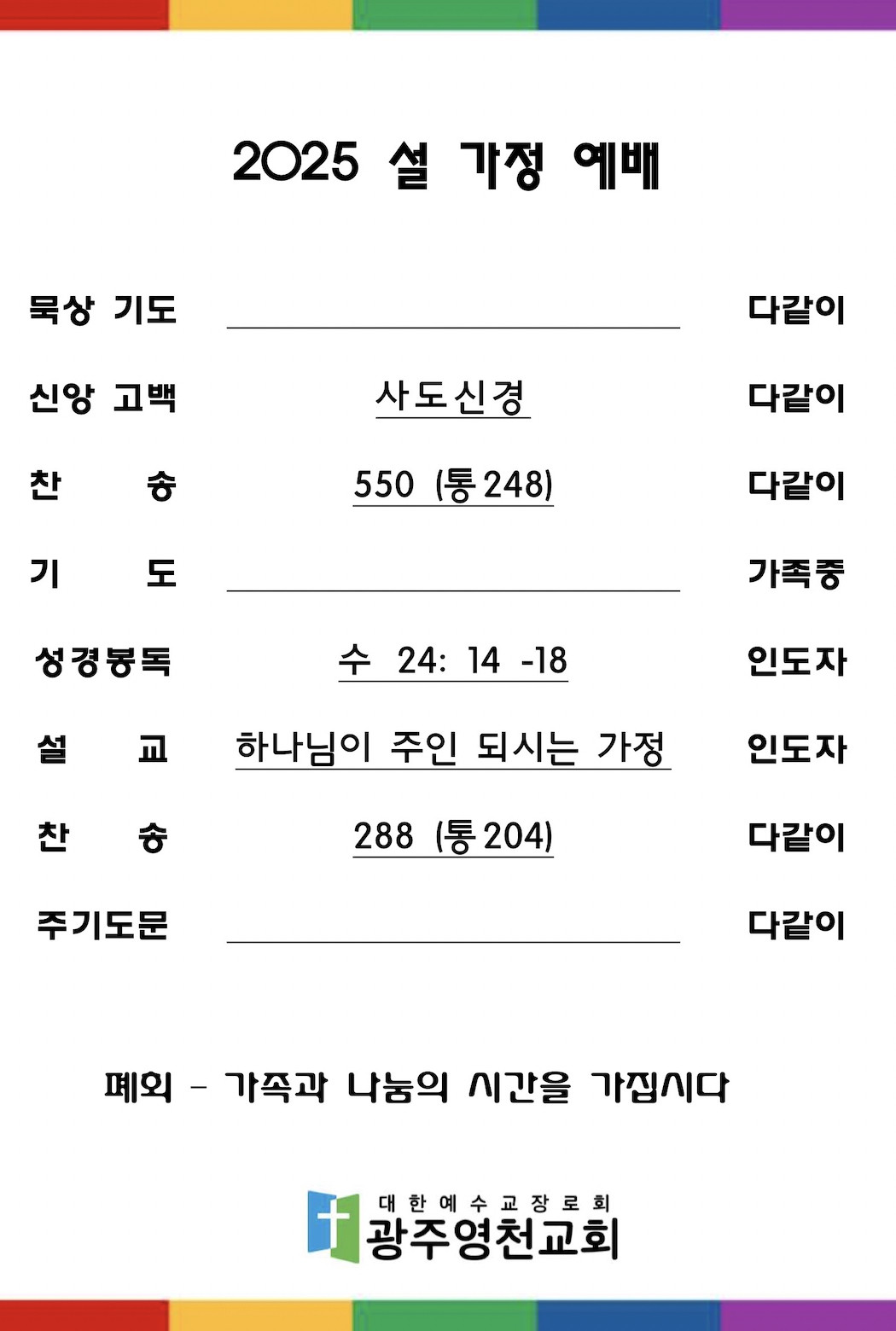 설 멸절 안내(설 예배 순서지)
